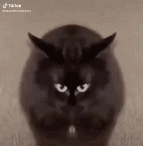 Black cat with mirrored effect making funny faces, a viral TikTok meme with 'CATTOSTAKEOVER' text.