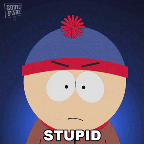 Stan Marsh from South Park, with an angry expression, says "Stupid".