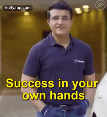 Sourav Ganguly gives a double thumbs-up, conveying 'Success in your own hands' with a motivational message.