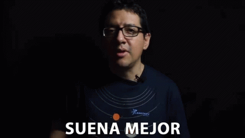 Man with glasses wearing a shirt that says 'Suena Mejor', discussing sound improvement.