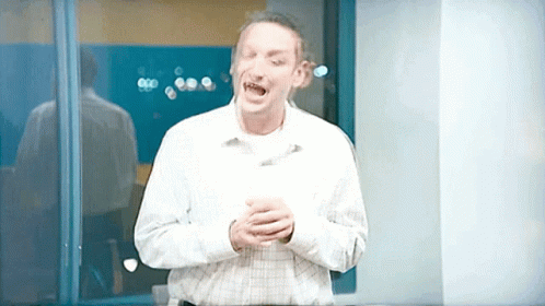 Tim dramatically confesses to Julie, 'I almost killed myself,' with an exaggerated, almost comedic expression.