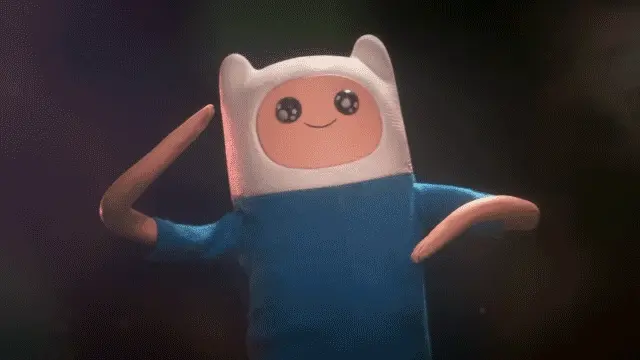Finn the Human from Adventure Time joyfully exclaims, 'We were all born to die!' amidst a shower of chicken wings.