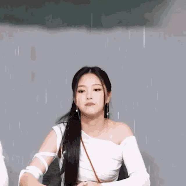 Zhou Jie Qiong (Wu Jiayi) shows a cute sulking expression, wearing a Prada headband and black shirt.