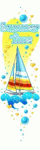 A pixel art illustration of a sailboat with 'summertime is here' text.