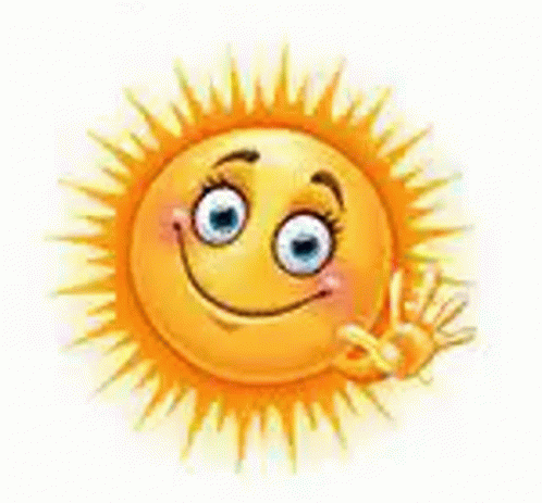 A cheerful cartoon sun with a friendly face waves hello, spreading morning cheer.