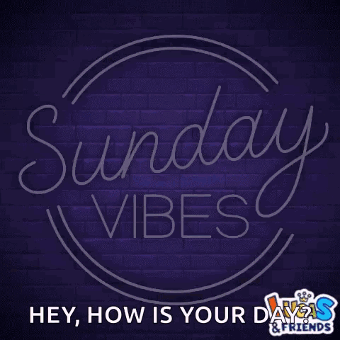 A vibrant neon sign glows with 'Sunday Vibes' text, creating a cheerful weekend mood. Features Lucas & Friends.