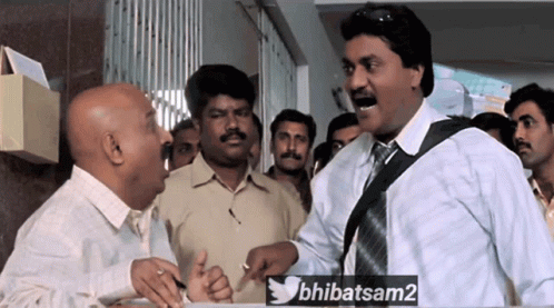 Sunil Gundu engaged in an intense conversation with another man, gesturing emphatically in a crowded setting.