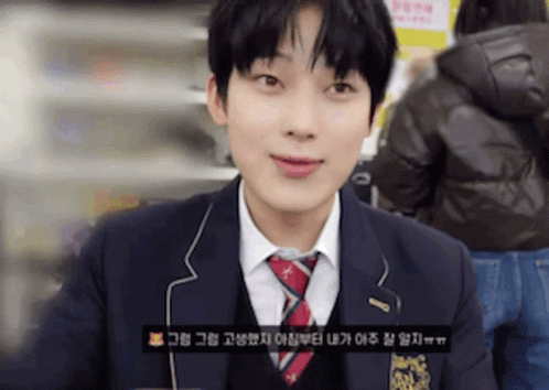 Sunoo Enhypen's expressive and funny reactions, smiling and making gestures in his school uniform.