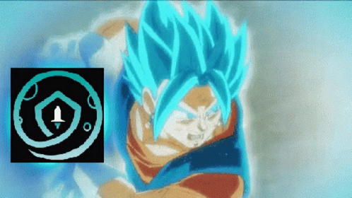 Pixel art animation of a Super Saiyan character with the Safemoon logo, powering up with infinite energy.