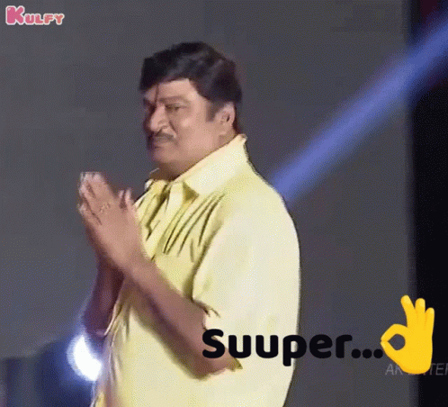 Rajendra Prasad reacts with a 'Suuper' gesture and expression at the Sarileru Neekevvaru Song Launch.
