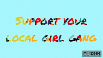 A vibrant graphic with the message "Support Your Local Girl Gang" in colorful, playful lettering.