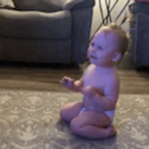 Cute baby reacts with wide-eyed surprise and awe to a perfectly landed bottle flip, expressing pure wonder.