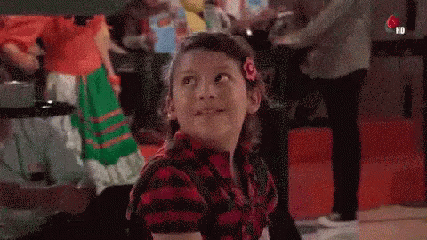 A little girl in a plaid shirt reacts with surprise during a segment on Chabelo's show.