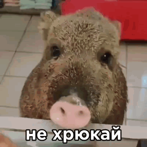 A person gently pokes a cute pig's snout, with the Russian caption 'Don't oink' displayed.