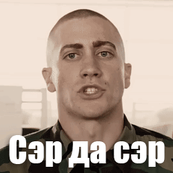 Anthony Swofford (Jake Gyllenhaal) from Jarhead, with 'Sir, yes sir' text overlay.