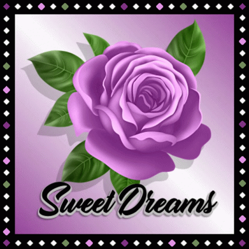 A beautiful purple rose with green leaves, accompanied by the comforting message 'Sweet Dreams' for a peaceful night.