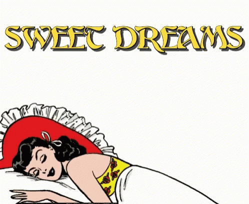 A charming cartoon woman sleeps peacefully on a red pillow, with 'Sweet Dreams' text and 'Zzz's' above her.