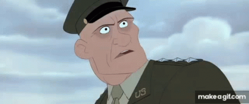 General Rogard from The Iron Giant looks surprised in his US military uniform.