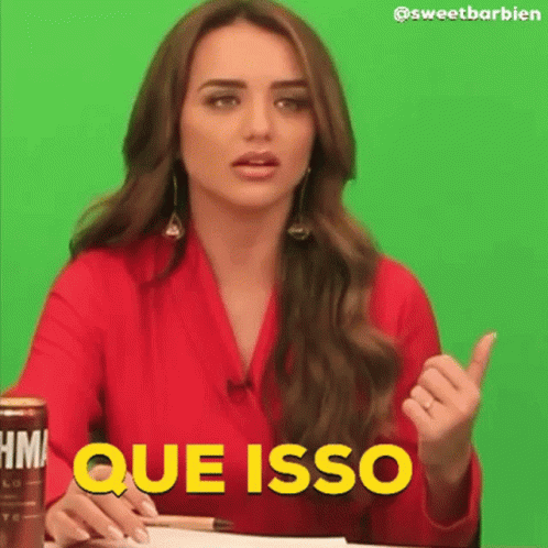 Rafakalimann reacts with 'Que Isso' on Sweetbarbien, wearing a red shirt against a green screen.