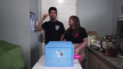 Viy Cortez and Cong TV react to a blue box with the phrase 'Syempre Hindi' (Of course not).