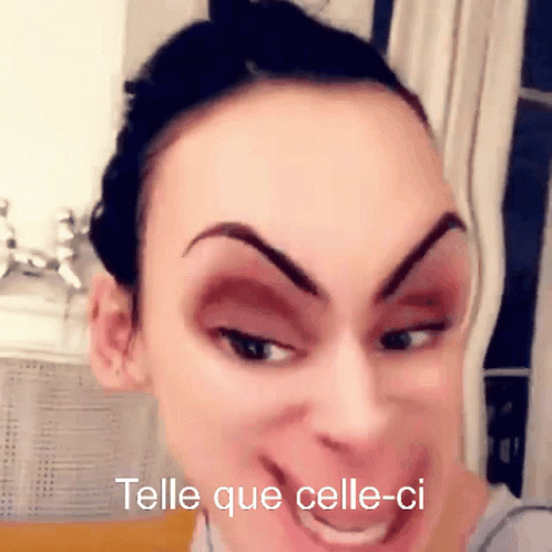Sylvie Telle makes a funny face using a filter, with the text 'Telle que celle-ci' displayed on screen.