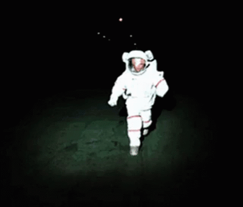 Synirr, an astronaut, walks in the dark, with text overlays asking for your location.