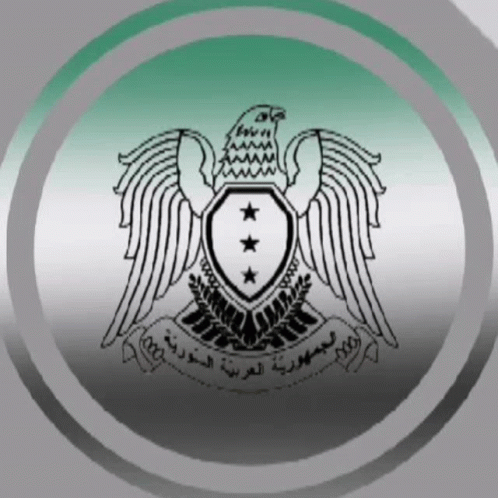 Animated display of the national emblem of Syria, featuring an eagle with a shield and three stars.