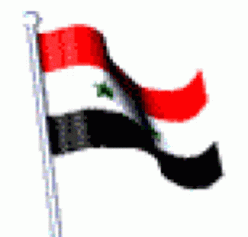 The national flag of Syria, featuring red, white, and black stripes with two green stars, waves proudly.