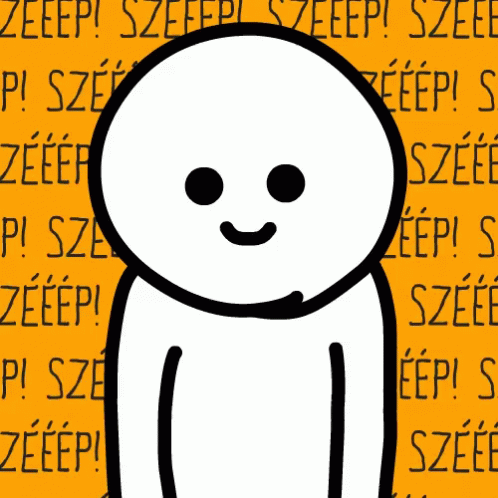 A simple cartoon character winks, reacting to the 'Szééép' text on a vibrant yellow background.