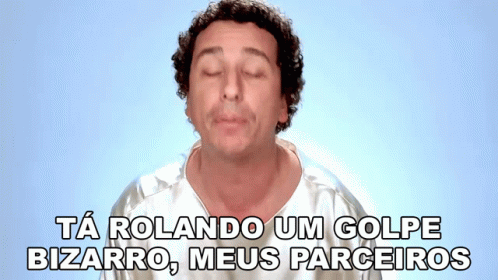 Rafael Portugal alerta: 'Tá rolando um golpe bizarro, meus parceiros!' em cena cômica.