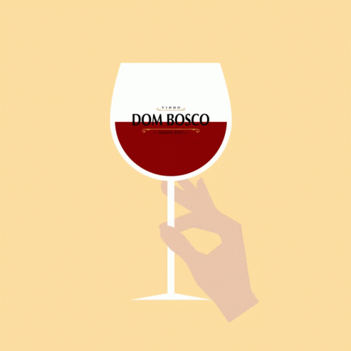 A hand holds a glass of Dom Bosco red wine, featuring the brand logo.