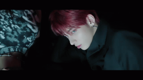 Taehyun of TXT in an intense pose amidst blue and purple laser lights for Puma.