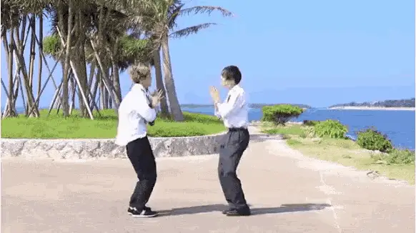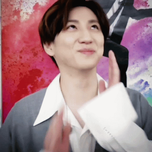 Sixtones member Taiga Kyomoto makes an adorable expression, holding his hands to his cheeks and smiling.