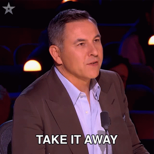 David Walliams, a judge on Britain's Got Talent, says 'Take It Away' into a microphone.
