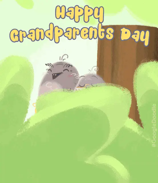 Cute opossum family illustration celebrating Feliz Dia de Los Abuelos (Happy Grandparents' Day).