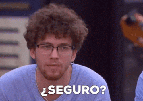 Jesus Rendon, from OT2020, asks '¿Seguro?' with a skeptical expression, wearing glasses and a blue sweater.