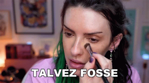 Karen Bachini applies makeup while the Portuguese phrase "Talvez Fosse Uma Boa Ideia" appears on screen.