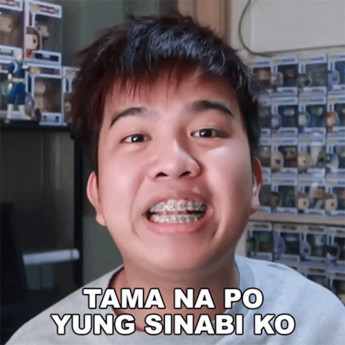 Junell Dominic, a young man with braces, makes a funny face while saying 'Tama Na Po Yung Sinasabi Ko' (What I said is enough).