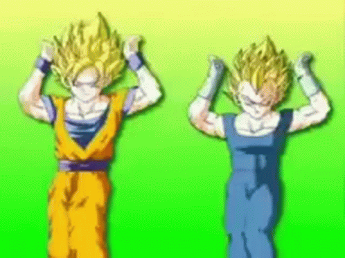 Goku and Vegeta from Dragon Ball Z dance to 'Vamoh A Comer Tamales' on a green background.