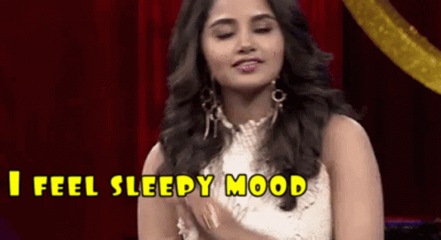 A Tamil actress in a white dress expresses a sleepy mood and wishes good night.