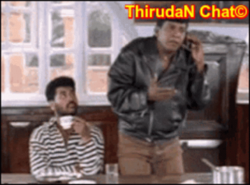 A man talks agitatedly on the phone while his friend calmly sips coffee, with the caption 'COOL DOWN, COOL DOWN, COOL DOWN!'.