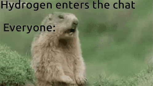 A groundhog meme with text 'Hydrogen enters the chat Everyone: HEY!', featuring Tatya Vinchu context.