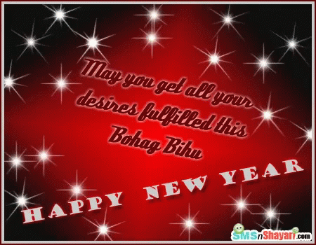 Animated greeting card with sparkles on a red background for Tax Day and New Year celebration.