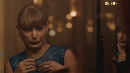 Taylor Swift making a funny, expressive face, likely from her "Delicate" music video.
