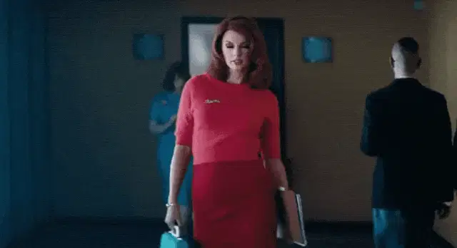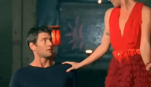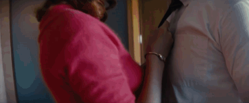 a man and a woman are looking at each other 's faces .