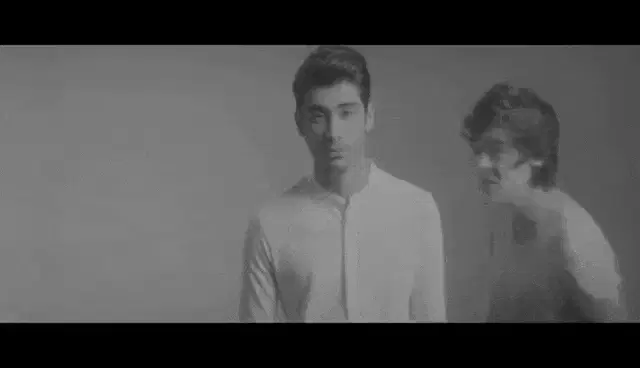 Taylor Swift and Zayn share an intimate moment in a dimly lit room, likely from the movie Fifty Shades Darker.