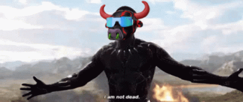 A Black Panther-like character with bull features, associated with Tbc The Bull Club, declares 'I am not dead.'