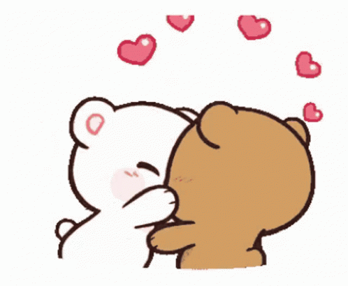 Milk And Mocha bears share a sweet kiss, surrounded by hearts, expressing their 'Te Amo' sentiment.