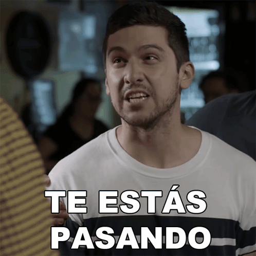 A man in a striped shirt looks displeased as the text 'Te Estás Pasando' appears on screen.