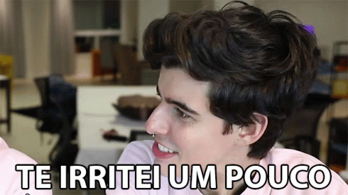 Young man from Luba TV says "Te Irritei Um Pouco" (I annoyed you a little) with an irritating expression.